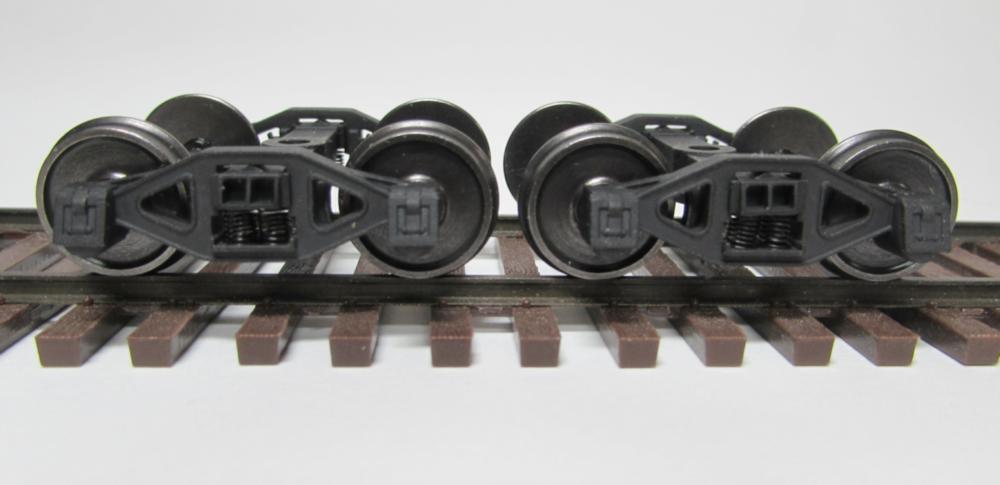 The trucks are 3D-printed in black resin with nylon bearing inserts. They are sprung and equalizing. The springs are black. The wheels are machined stainless steel, code 110, blackened. Assembly is required. These are produced by Miniatures from the North in Canada. Pre-Size Model Specialties is retailing them in the U.S. so you don't have to pay international shipping. The price is per pair, and we offer free shipping!